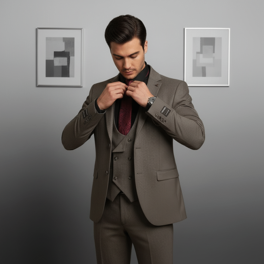 Experience refined tailoring with this Super140 3 piece suit from Marco Ricci Suit. Finished in a refined Honey tone, this suit offers structure, drape and comfort for long days. Ideal for business, weddings and evening occasions.